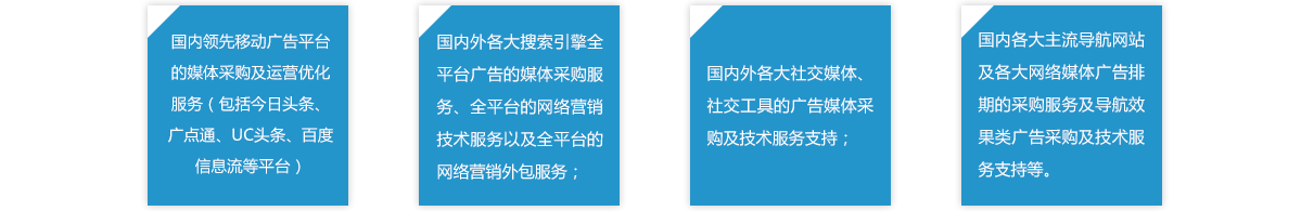 广点网络于2013年在上海成立,于2018年成立上海点效广告有限公司专注字节跳动公司(旗下产品包括不限于:今日头条、抖音、西瓜视频、火山小视频、懂车帝、穿山甲、激萌等)巨量引擎广告平台的广告代理业务,2019年成立上海蓝色海洋广告有限公司专注腾讯公司(旗下产品包括不限于:微信、腾讯新闻、腾讯视频、微视、天天快报、QQ、QQ音乐、QQ浏览器、腾讯优量汇等)腾讯广告业务的代理服务。是一支拥有10年以上互联网行业资深管理及销售经验的精英组织而成,致力于帮客户解决一站式整合营销,为国内外客户提供专业数字化整合营销服务。目前公司业务已覆盖国内领先移动广告平台的媒体采购及运营优化服务;国内外各大搜索引擎全平台广告的媒体采购服务、全平台的网络营销技术服务以及全平台的网络营销外包服务;国内外各大社交媒体、社交工具等的广告媒体采购及技术服务支持;国内各大主流导航网站及各大网络媒体广告排期的采购服务及导航效果类广告采购及技术服务支持等。至此,广点网络先后服务于上汽集团、沃尔沃、博世中国、波奇网、返利网、上汽车享网、到喜啦、中国婚博会、华夏家博会、韩国艺匠、唯一视觉等国内外各行业的领先客户,我们通过尖端的科技和卓越的服务,帮助他们在数字营销领域取得不断的成功。